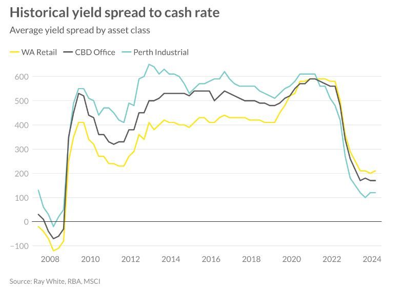 The growing income returns have helped maintain these positive total returns, boosting confidence in Western Australian commercial investment. Looking ahead, expected interest rate improvements in late 2024 and 2025 may help restore spreads to more acceptable levels. However, the market bottom remains uncertain. High-quality assets with strong returns or development potential continue to exert downward pressure on yields. This period presents both challenges and opportunities for astute investors who can identify long-term prospects or untapped potential in existing assets.